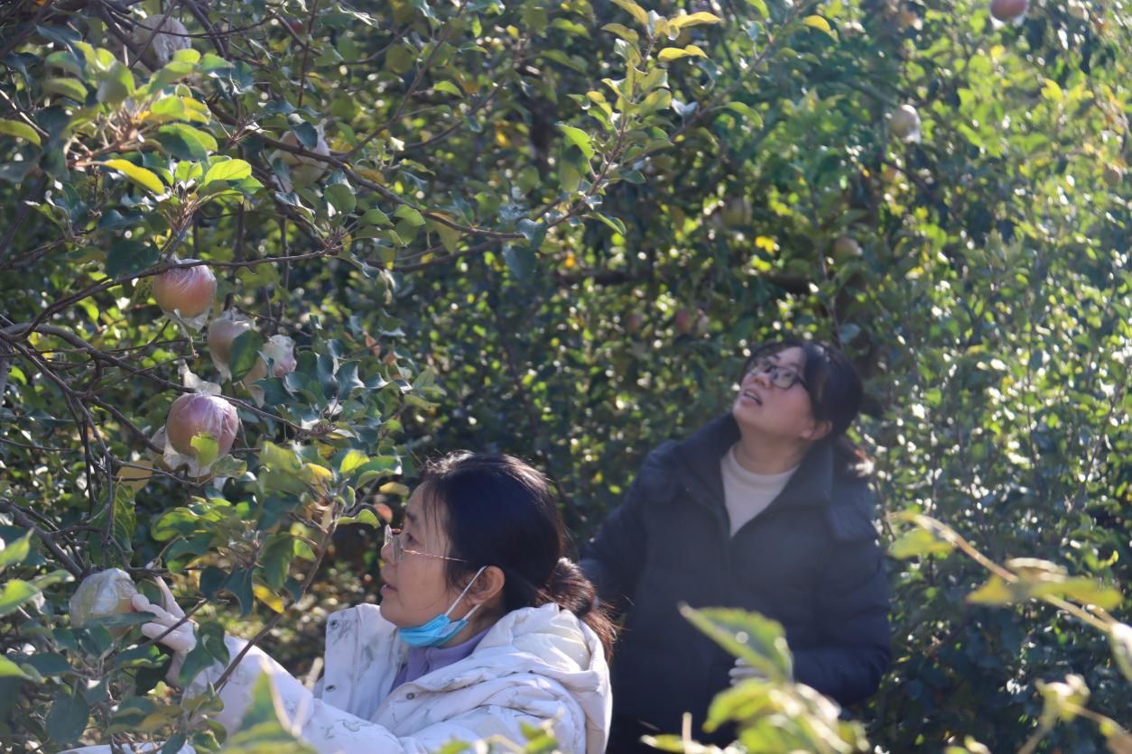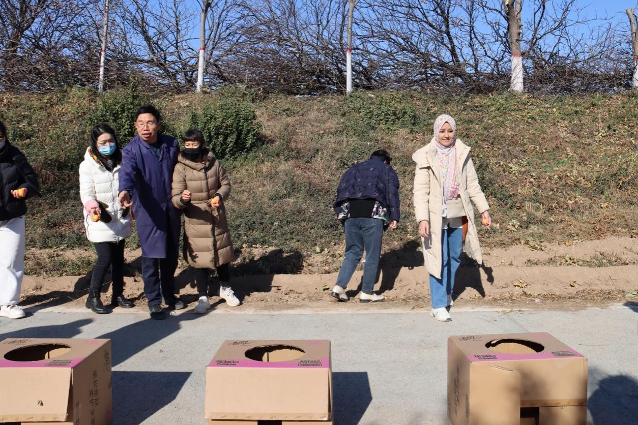 活动现场还特别设置了妙趣横生的互动环节。“果王争霸赛”中,大家踊跃展示自己采摘到的最大最红的苹果,角逐“果王”殊荣;“精准投球”游戏吸引了众多教职工参与,精准的投球迎来阵阵喝彩。这些精心设计的活动不仅增添了采摘的乐趣,更在轻松的氛围中加深了同事间的交流。活动结束后,大家满载而归,不仅收获了新鲜甜美的果实,更在放松身心、交流互动中增进了情谊。