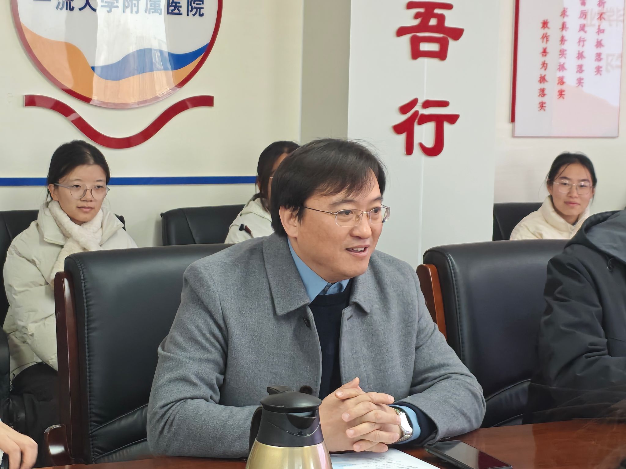 活动伊始,师生在医院红旗厅参加了专题座谈会。第一临床学院(第一附属医院)副院长吕心瑞对同学们的到来表示热烈欢迎。他在致辞中指出,第一附属医院不仅是河南大学医学教育的重要支撑,更是学校百年办学历史的生动缩影。吕心瑞还以优秀校友的成长经历为例,阐述了生物医学科学专业在“医工交叉”领域的独特优势与发展前景,勉励同学们在校期间勤奋学习,未来成长为优秀的医学研究与创新人才。