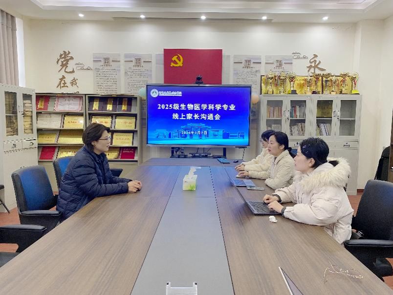 为深化家校协同,学院于2月7日上午组织召开了2025级生物医学科学专业线上家长沟通会。学院党委副书记郭佳、辅导员陈贝贝、生物医学科学办公室主任王艳鸽及主任助理王梅娜老师共同出席。会议重点通报了该专业作为全国首批招生的新增交叉学科的建设进展、首届学生的优异学业表现,并明确了常态化沟通、关注学生心理与支持全面发展的家校共育要求,高效凝聚了育人合力。