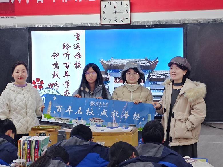2月6日,生物医学科学办公室主任王艳鸽老师、主任助理王梅娜老师与辅导员陈贝贝老师,深入2025级本科生樊苹同学家中进行交流,共话学生成长。其后,樊苹同学在老师陪伴下重返信阳市第二高级中学,向学弟学妹们介绍河南大学的办学底蕴与校园风采,并细致讲解了基础医学院及生物医学科学专业的办学特色与培养方向,分享会现场互动积极,反响热烈。