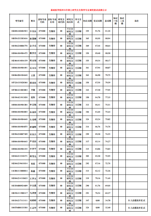 下一条:基础医学院2026年硕士研究生生物学专业调剂复试名单公示