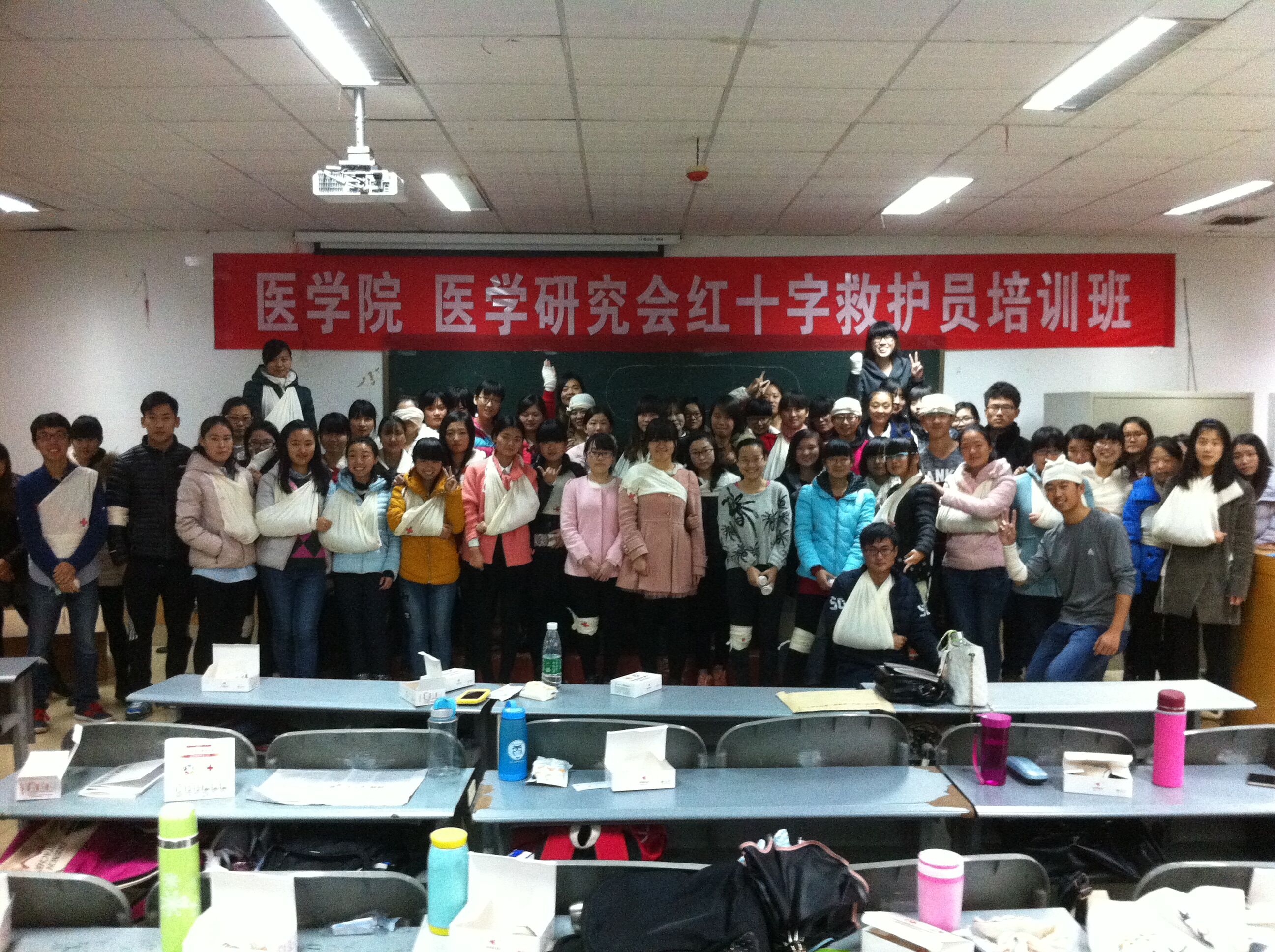 2015年11月21至22日,由医学研究会联合开封市红十字会举办的红十字救护员培训活动在医学院606会议室成功举行。开封市红十字会秘书长韦志、开封市第二人民医院急诊科主任王绍谦、医学院党委副书记刘志臣、团委书记张磊等出席活动。开班仪式由医学研究会会长王俊武主持。