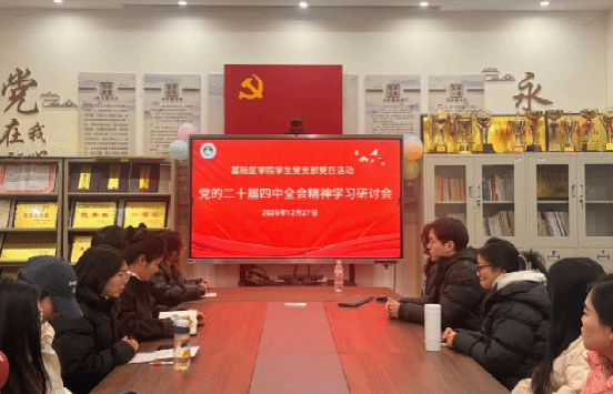 为深入学习贯彻党的二十届四中全会精神,引导基础医学研究生党员自觉将学习与科研融入国家发展大局,2025年12月27日,基础医学院学生党支部在学院党建会议室组织召开专题学习研讨会,围绕四中全会精神开展深入交流。活动由党支部组织委员陈贝贝主持。