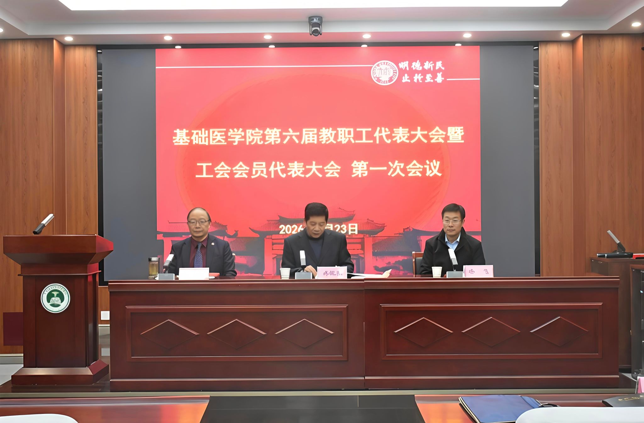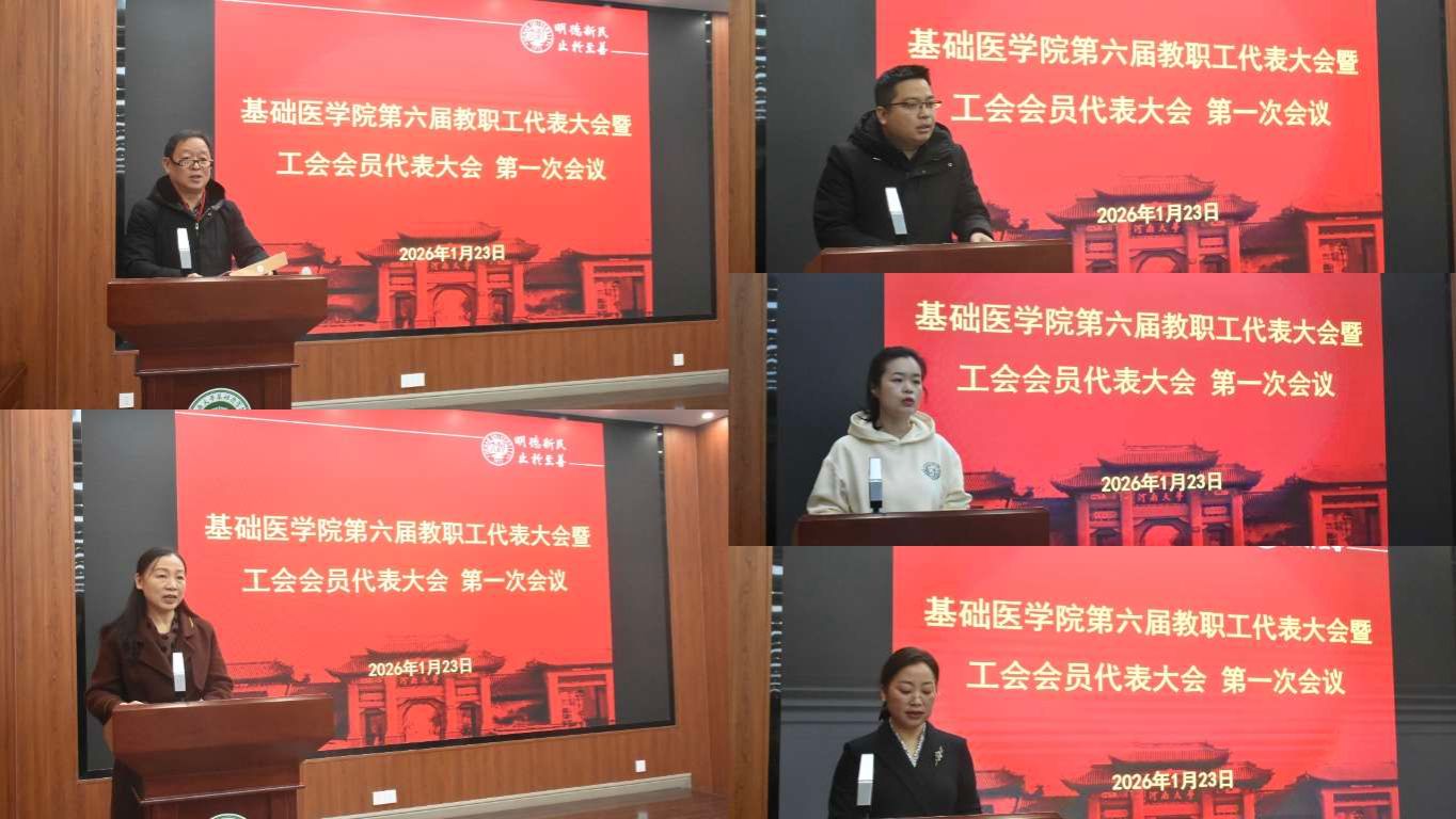 2026年1月23日,基础医学院第六届教职工代表大会暨工会会员代表大会第一次会议在学院一楼学术报告厅顺利举行。校工会副主席徐飞出席会议,学院正式代表、特邀嘉宾、列席代表参加会议。会议由学院党委书记傅侃达主持。