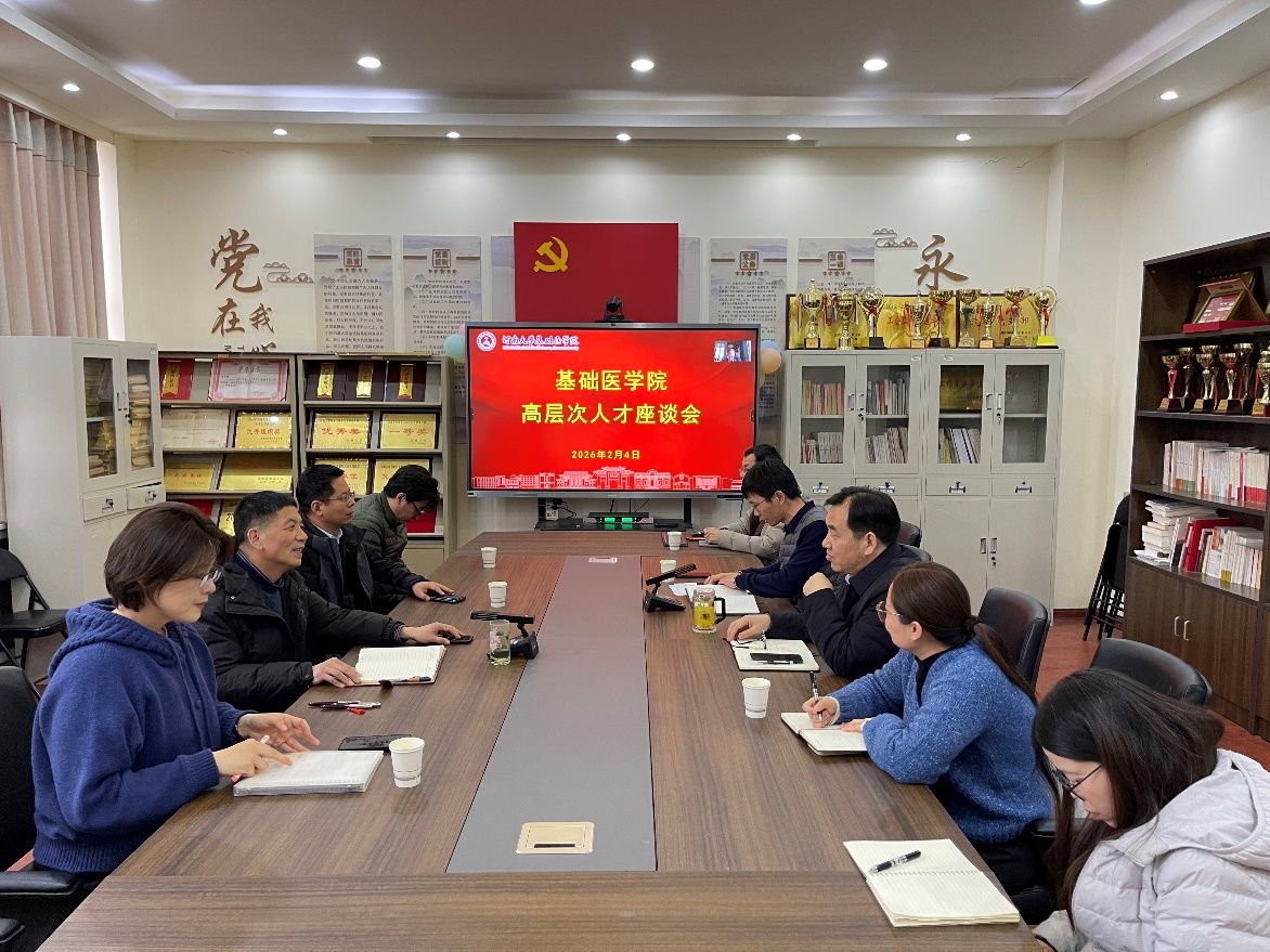 为深入营造尊重人才、关爱人才的良好氛围,2月4日下午,学院在党建活动室召开高层次人才座谈会。基础医学院党委书记傅侃达、副书记郭佳、副院长马跃敏、副院长王耀辉等与高层次人才代表齐聚一堂,共话情谊,共商发展。座谈会由王耀辉主持。