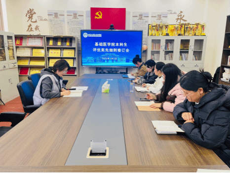会议第二阶段围绕评先奖优制度修订开展专题研讨,参会人员围绕学校新医科人才培养建设规划及新修订的生物医学科学专业2+2培养方案,聚焦奖项设置、评选标准、成绩核算、综合测评细则等核心内容进行深度研讨,进一步规范评选工作的组织实施流程,对制度修订中的关键细节、实操要点形成统一意见,明确制度优化方向,确保修订后的评先奖优制度兼具科学性、公平性与可操作性,充分发挥评价激励的导向作用,为后续学生评先奖优工作的规范化开展提供制度支撑。