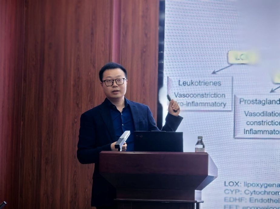 报告中,胡炅教授系统介绍了多不饱和脂肪酸代谢在维持血管稳态中的关键作用,并深入探讨了该代谢通路异常如何参与眼底血管稳态和阿尔茨海默症的发生发展。他从脂代谢调控、血管功能重塑到中枢神经系统病理改变,层层递进地揭示了多不饱和脂肪酸代谢中的sEH水解酶在血管稳态与神经退行性疾病中的重要作用。报告内容兼具基础前沿与转化前景,引起了在场师生的浓厚兴趣。