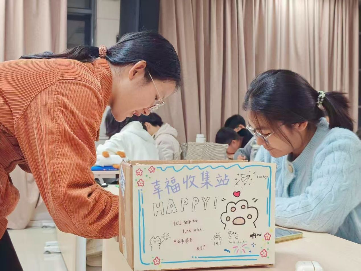 室外互动体验环节:10月30日,室外团日活动在南田径场举行,设置“放飞烦恼”、“心灵探索”飞行棋和“请与我击掌”三个游戏环节。同学们将压力折成纸飞机放飞,同时为他人的“烦恼”写下温暖回复,在飞行棋游戏中完成心理任务,敞开心扉真诚分享,“请与我击掌”进一步促进了同学们的心灵交融,传递了同学间真诚的祝福。负责摄影的同学同步记录了同学们喜笑颜开的瞬间。