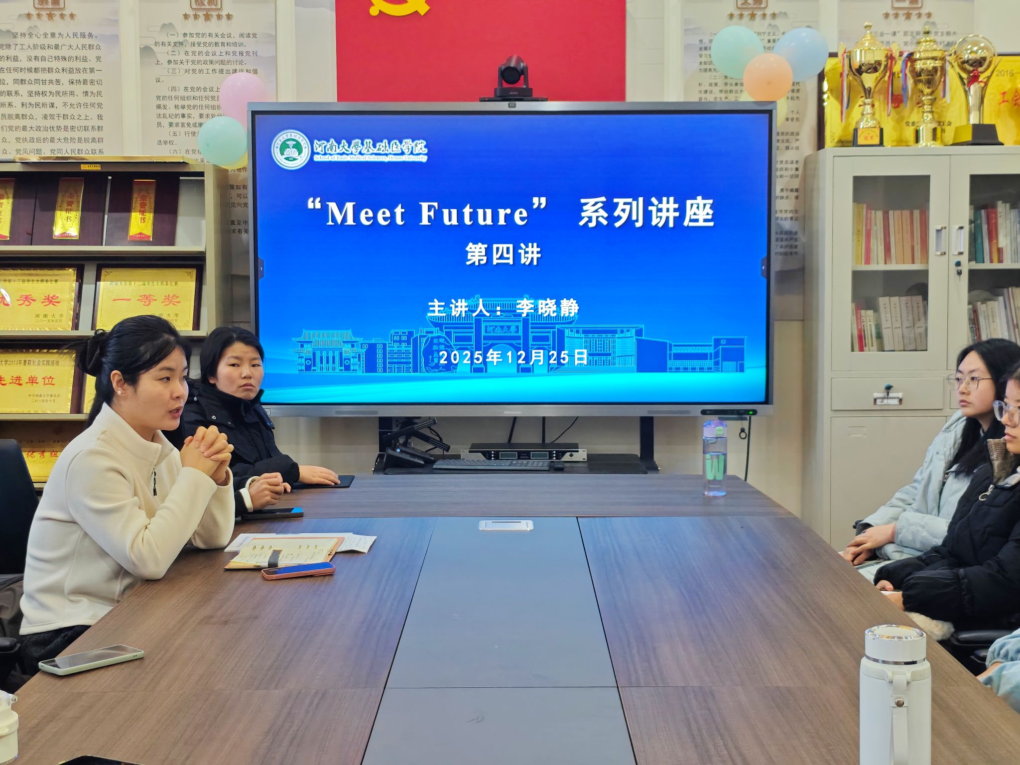 为引导本科新生科学规划学业生涯、明确发展方向,2025年12月25日,基础医学院“Meet Future”系列讲座第四讲在学院一楼党建活动室顺利举行。本次讲座以“双线共进规划大学之路”为主题,由学院团委负责人李晓静老师主讲,2025级生物医学科学专业全体本科生参加。